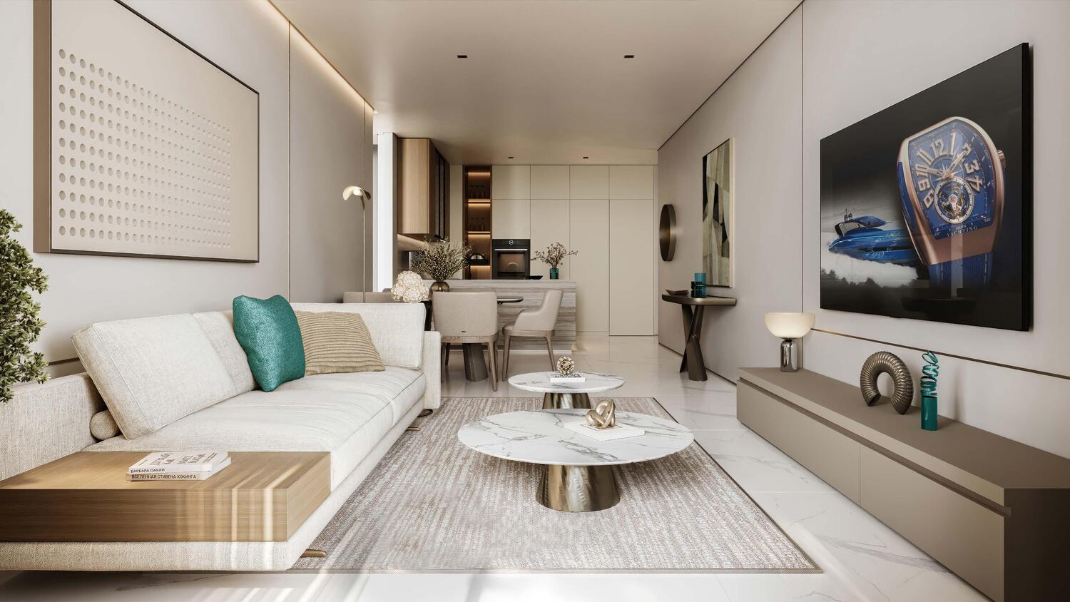 Internally, the residences mirror the sophistication found in Franck Muller's renowned designs, with each space meticulously designed to perfection. The elegant interiors boast contemporary layouts, soft marine color palettes, and top-tier finishes that exude a sense of tranquility and opulence. Each apartment's ambiance strikes a harmonious balance between luxury and peacefulness, transforming every living space into a serene sanctuary with captivating sea views.